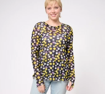 LOGO By Lori Goldstein X Smiley World Special Edition Mesh Top