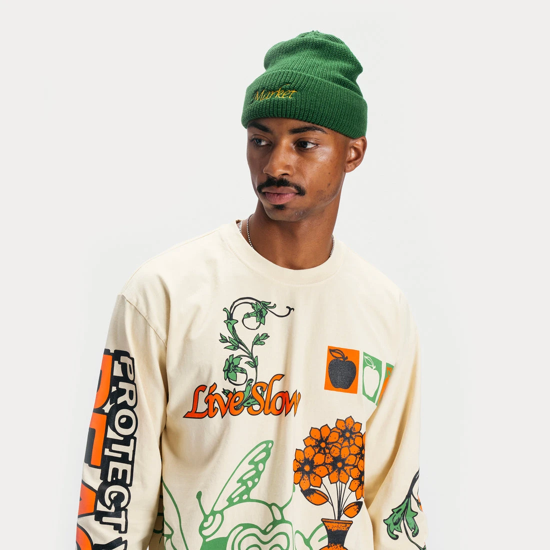 Preemo beanie with chenille upside down Smiley patch and embroidered Market logo