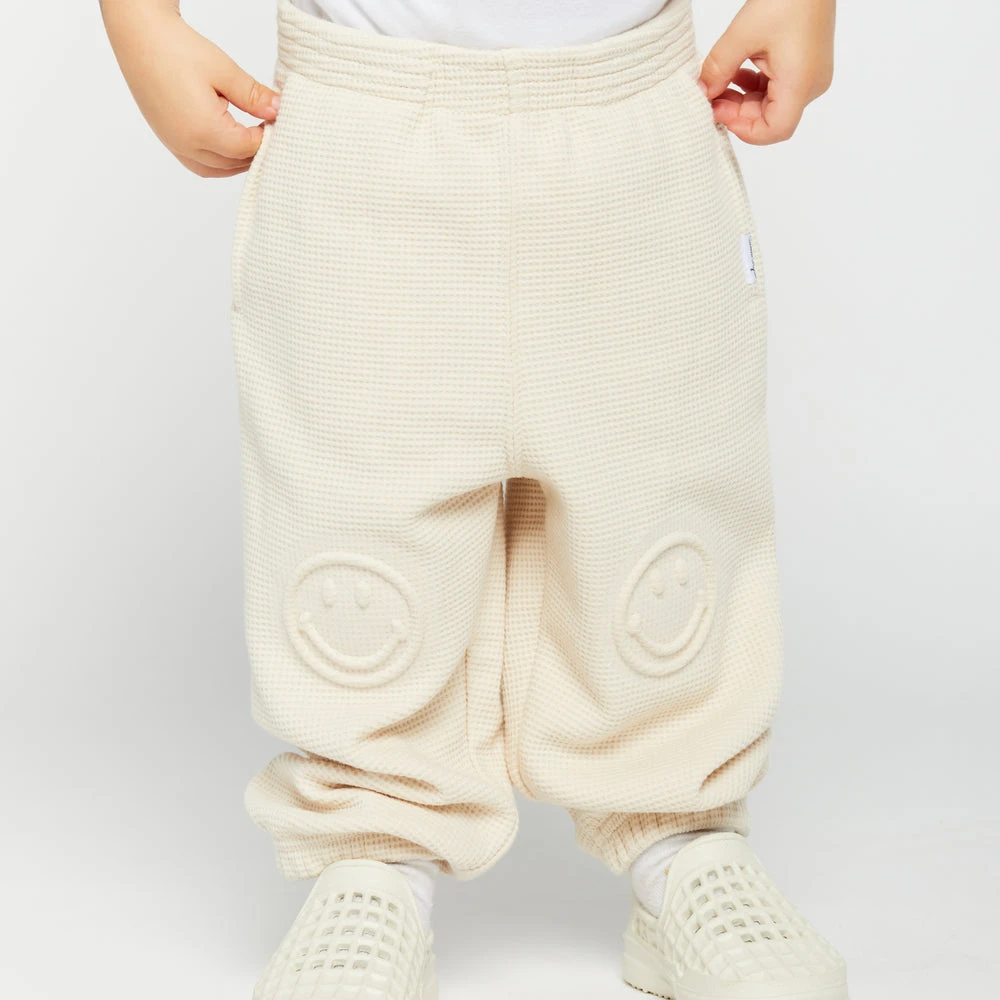 - Embossed smiley face on the front knees
